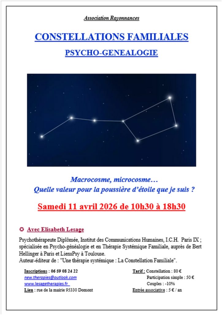 Les prochaines séances de Constellations Familiales :